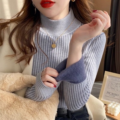 ベーシックニット タートルネックセーター レディース百掛け ニットトップス 韓国ファッション裹起毛 長袖 ハイネックニットカシミヤタッチ