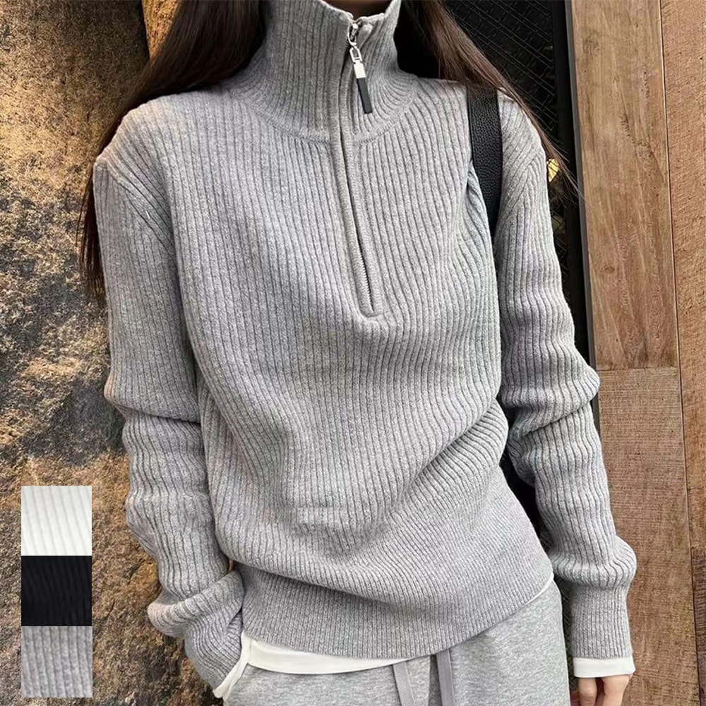 4タイプ選べデザインニット トップスレディースファッションハーフタートルネックベースの長袖ニセーター 春秋冬 ニット