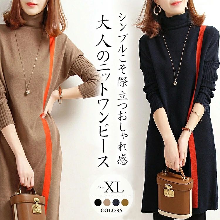ニットワンピース 大きいサイズ レディース ひざ丈 ワンピース ミディアム きれいめ 長袖 大人 秋 冬 大人かわいい シンプル 無地 通勤 おしゃれ 同窓会 二次会 演奏会 ミニ丈 スリット