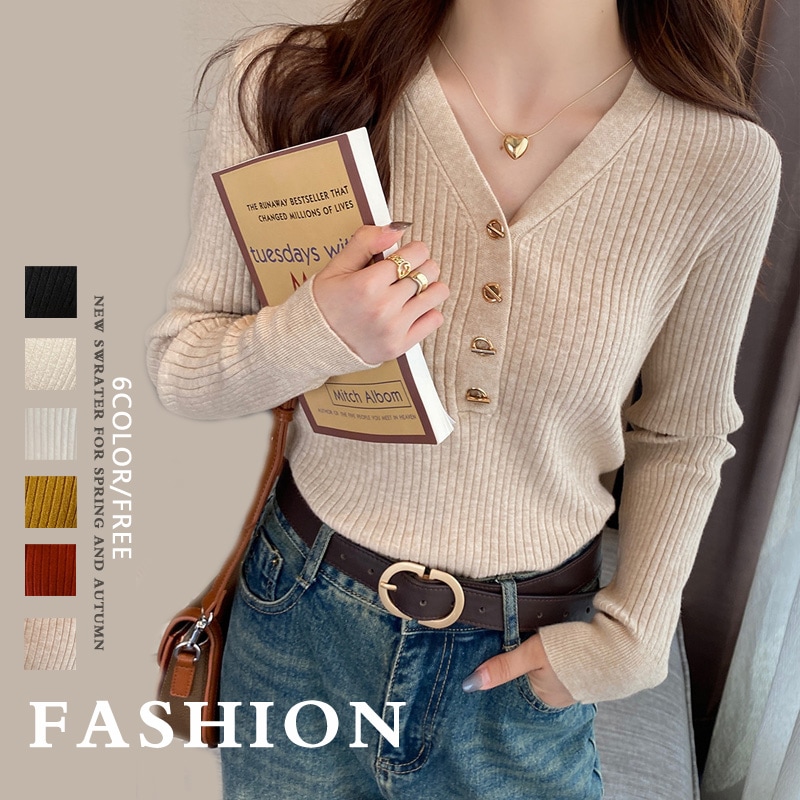 2025春新作韓国ファッショントップス ニットセーター レディース ニット セーター vネック 長袖 プルオーバー レディース ニット