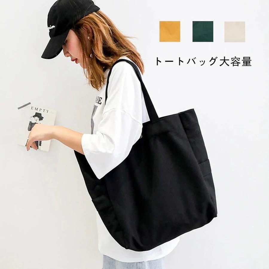 韓国ファッション 大容量トートバッグ トートバッグ 無地 帆布 ズック トートバック かたかた掛け 肩掛けカバン ズックバッグ トートバッグ