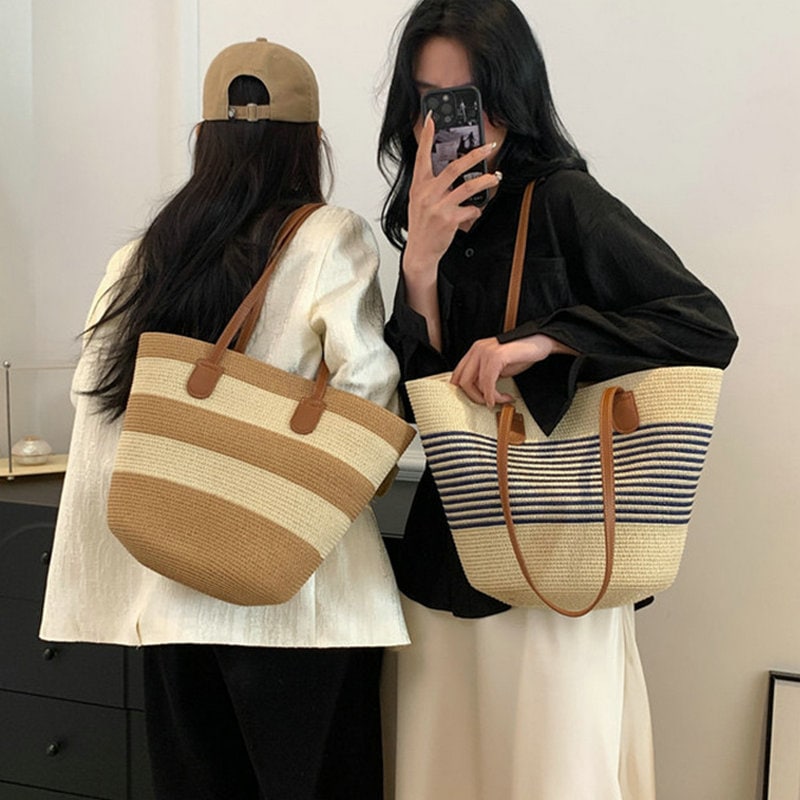 早い者勝ち ショルダーバッグ 大きめ ボヘミアン カジュアル ショルダーバッグ 韓国 レディース レトロ 可愛い ストライプ トートバッグ