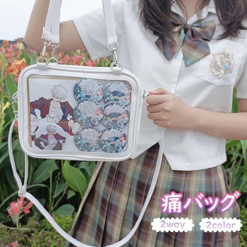 2way 痛バッグ 通勤 通学 PU革 痛バ トートバッグ 2色選択 ブラック ホワイト 大容量 透明ビニール 痛ショルダーバッグ 軽量 痛バ 子供 学生鞄