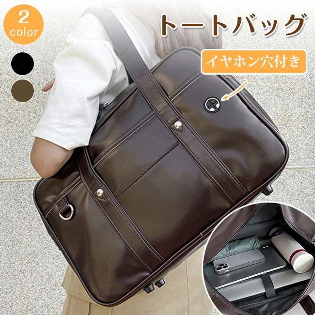 トートバッグ スクール カバン 中学生 高校生 イヤホン穴付き JK 防水 PUレザー 大容量 手提げ ショルダーバッグ 斜めがけ 通勤 カジュアル 学生鞄 レディース メンズ 男女兼用 学生