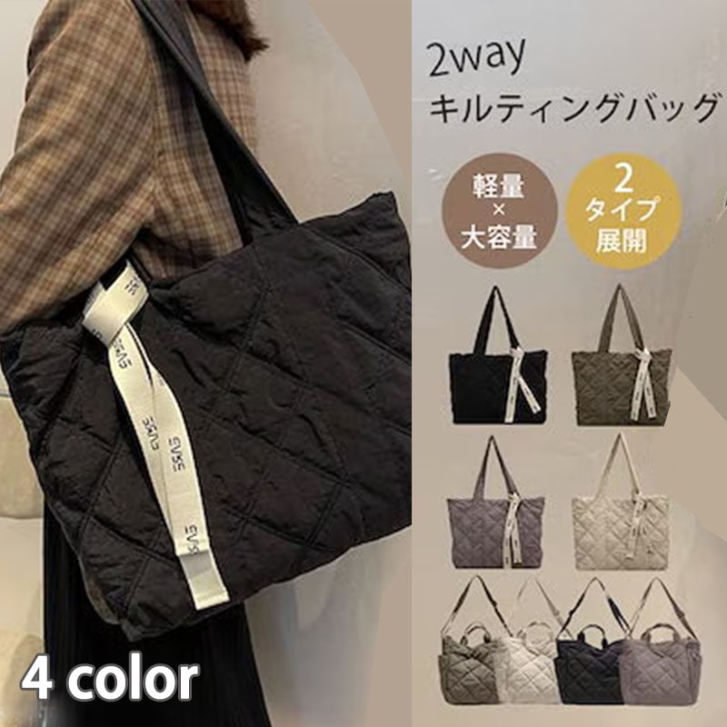 韓国風 撥水 通勤 多ポケット 肩掛 エコバッグ 韓国ファッション マザーズバッグ 2WAY トートバッグ レディース カバン キルティング ショルダーバッグ 大容量 軽量 ナイロン