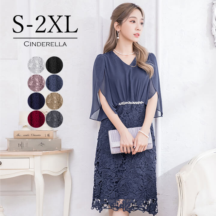 パーティードレス 結婚式 ワンピース パーティドレス ミディアム ミディアムドレス 膝丈 膝下 大き ドレス