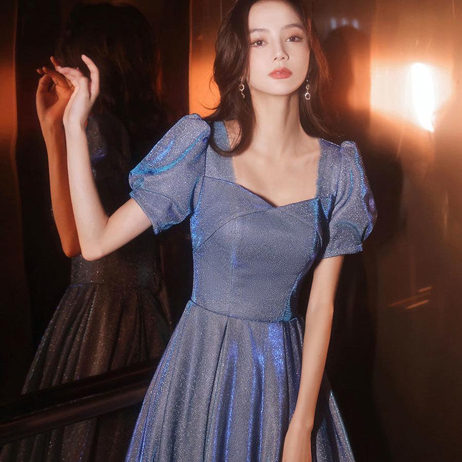 冬のワンピース大人気激安 演奏会 ロングドレス韓国ファッション 入学式ドレス ブルーのイブニングドレススカート女宴会カジュアルワンピース