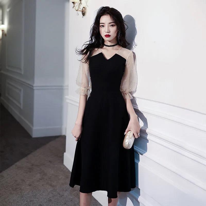 パーティードレス ドレス 黒のイブニングドレスの女性フランスの年次総会の誕生日のドレス ドレス
