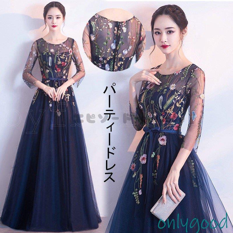パーティードレス 結婚式 ワンピース ドレス 親族 袖あり ロング丈 ロング フォーマルドレス 大きいサイズ 春 夏 秋 冬 20代 30代 40代 50代 60代