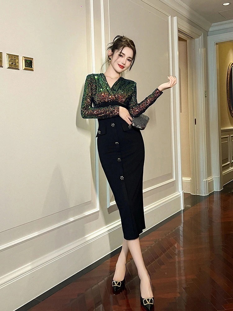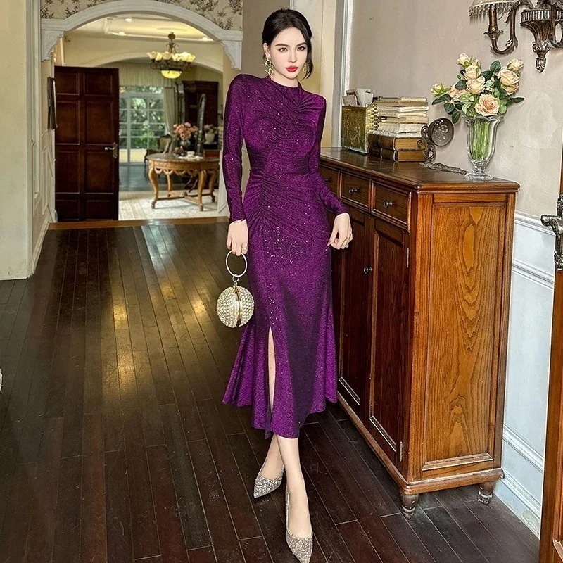 2024秋冬 ロングワンピース マーメイド スリム スリット パーティードレス 着痩せ 大人 お呼ばれ 同窓会 披露宴 卒業式 結婚式 ウェディング 二次会 成人式
