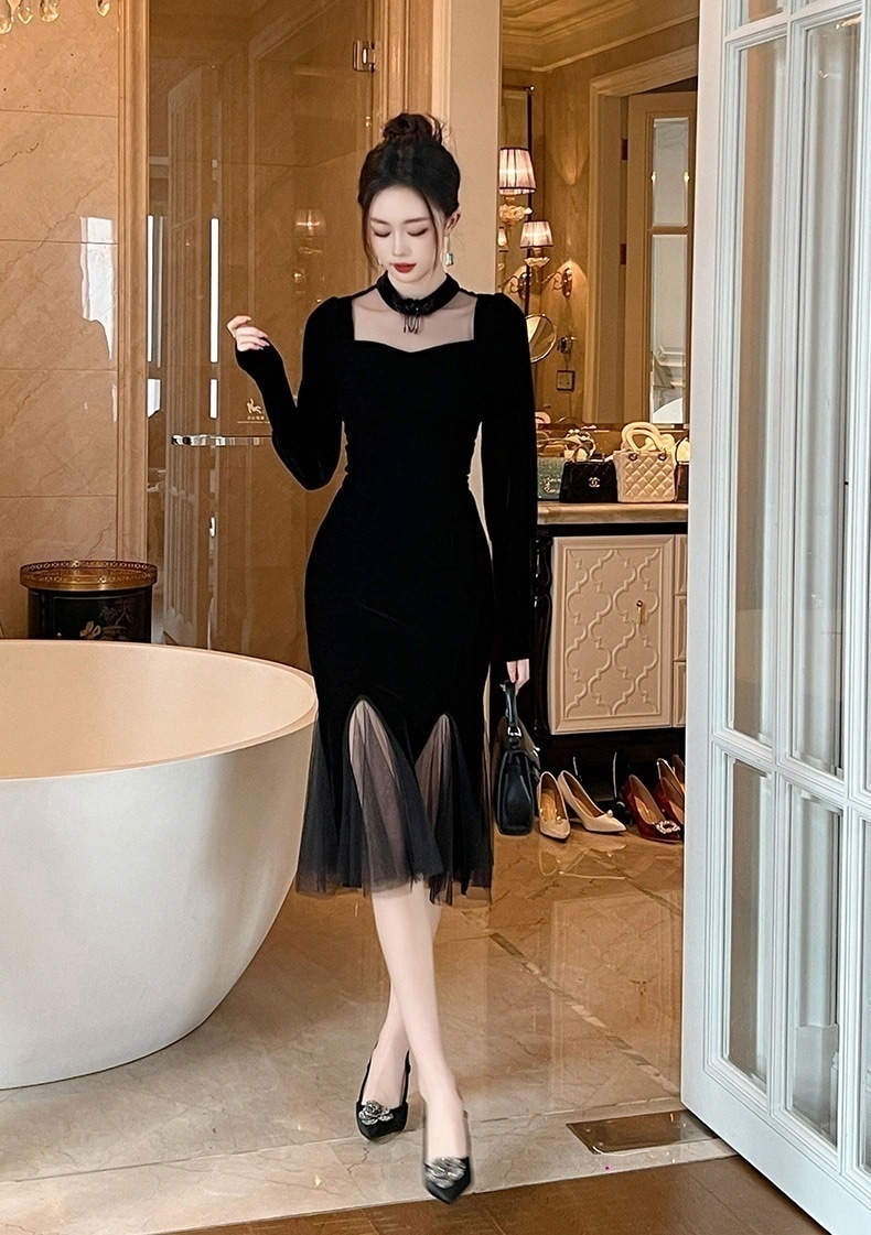 秋冬 チャイナドレス チュール マーメイド 新中式 ワンピ パーティードレス キャバ 着痩せ 大人 お呼ばれ 同窓会 披露宴 卒業式 結婚式 ウェディング 二次会 成人式