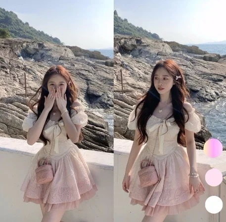 ワンピース 2024甘めグラデーションプリンセスポンポンワンピース夏は小柄で腰をすぼめて痩せて見える ドレス