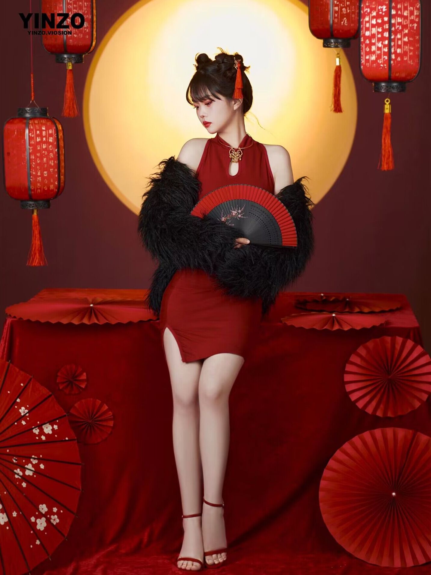 新年テーマ写真服赤龍年お祝い新年写真アート写真服 ドレス