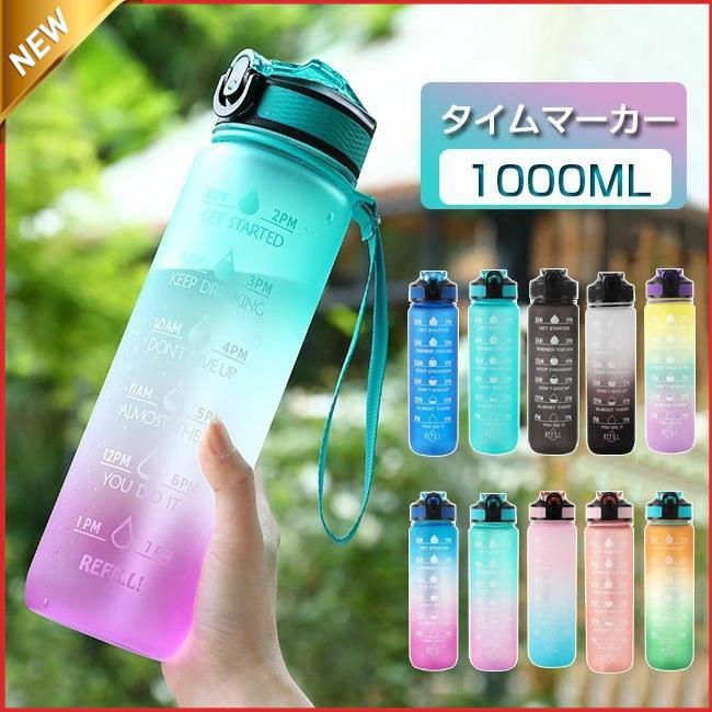 品物を厳選する水筒 1リットル 目盛り付き 水筒 1L ウォーターボトル ストロー付き水筒 タイムマーカー 携帯便利 漏れ防止 キッズ レディース 水筒 メンズ