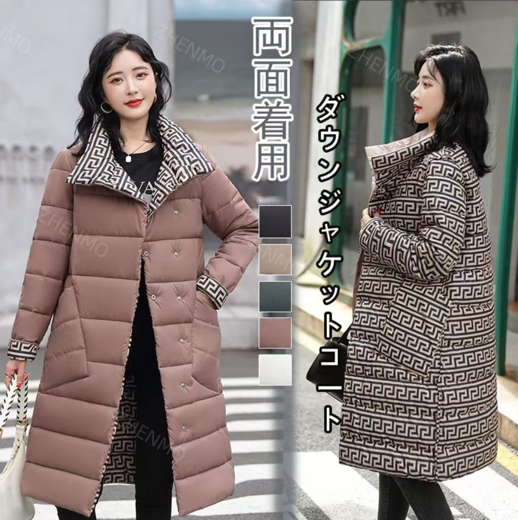ダウンコート レディース 超軽量 薄手 リバーシブル バイカラー ロング ライン フードなし ビッグポッケ スタンドカラー 軽量 薄手 大きいサイズ おしゃれ アウター ダウンジャケット 暖かい あ