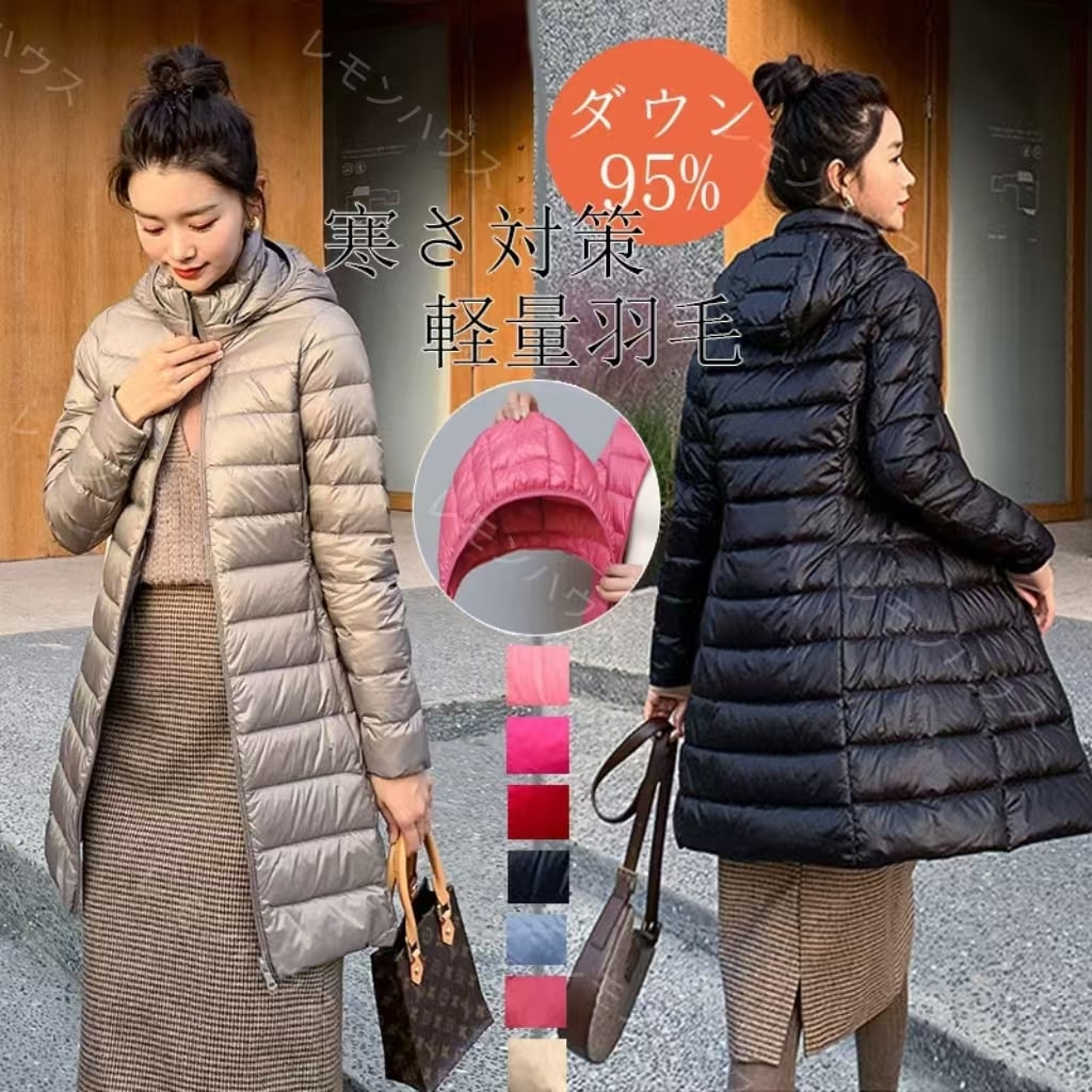 秋冬 ダウンコート レディース ロング ダウンジャケット 韓版 厚手 中綿コート ゆったり 着痩せ ダウンジャケット - 軽量 暖かいジャケット 防寒 アウトドアに なダウンジャケット