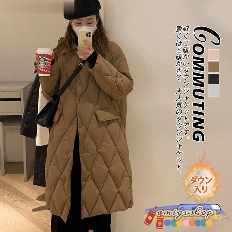 ダウンコートレディース 冬服 ロング丈 折襟 ボタンダウン 無地 秋冬 ダウンジャケット キルティングダウン 厚手 膝丈 ゆったり 暖かい 保温 防寒 羽織り