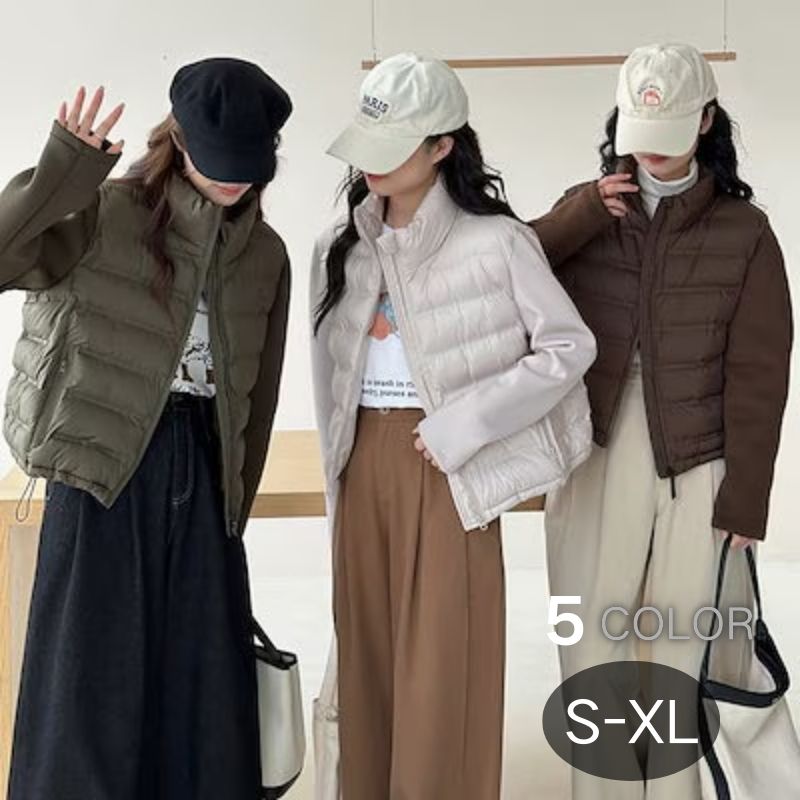 2024婦人服 ファッション ins 暖かい 防風 通勤 ゆったり 保温 アウター レディース ダウンジャケットインナー シンプル丸首コート 中綿 軽量 体型カバー