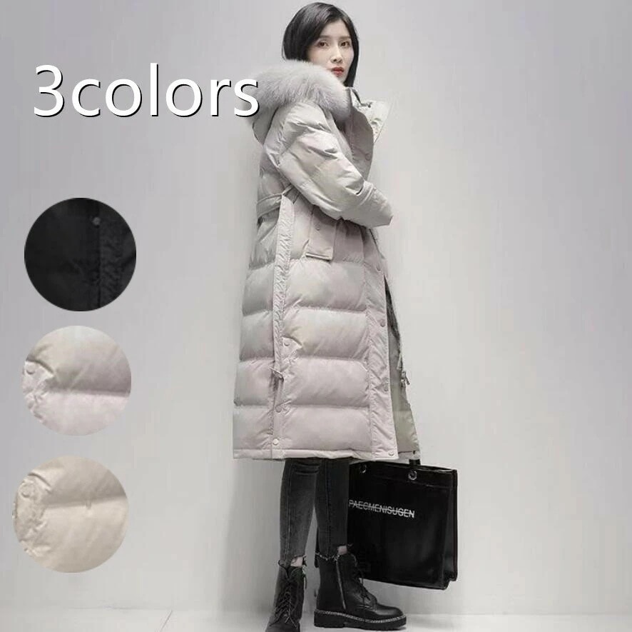 フォックスファー付取り外し可能ダウンコートレディースコートロングロングダウンコート冬きれいめダウン大きいサイズファーアウターダウンジャケットフード防寒対策暖かい