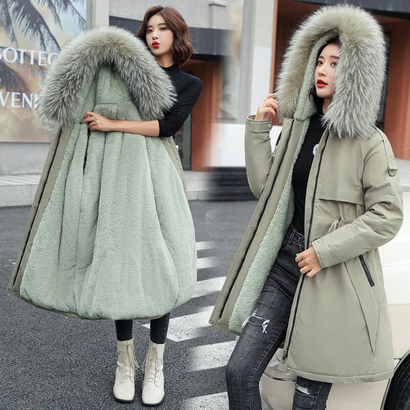 はキツネの毛皮をまねてダウンジャケットをつなぎ合わせた女性は冬に保温防寒パーカーを厚くする ダウンジャケット コート
