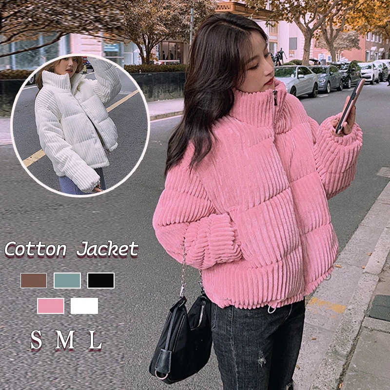 コーデュロイ中綿ジャケット 無地 ミドル ファスナー ダウンジャケットコート レディース韓国ファッション ダウンジャケット コート