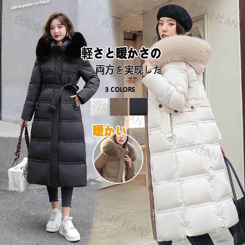 ロングコート ダウンコート 韓国ファッション ロング丈 ベンチコート フード付き ダウンジャケット アウター 厚手中綿コート レディース 通勤 通学