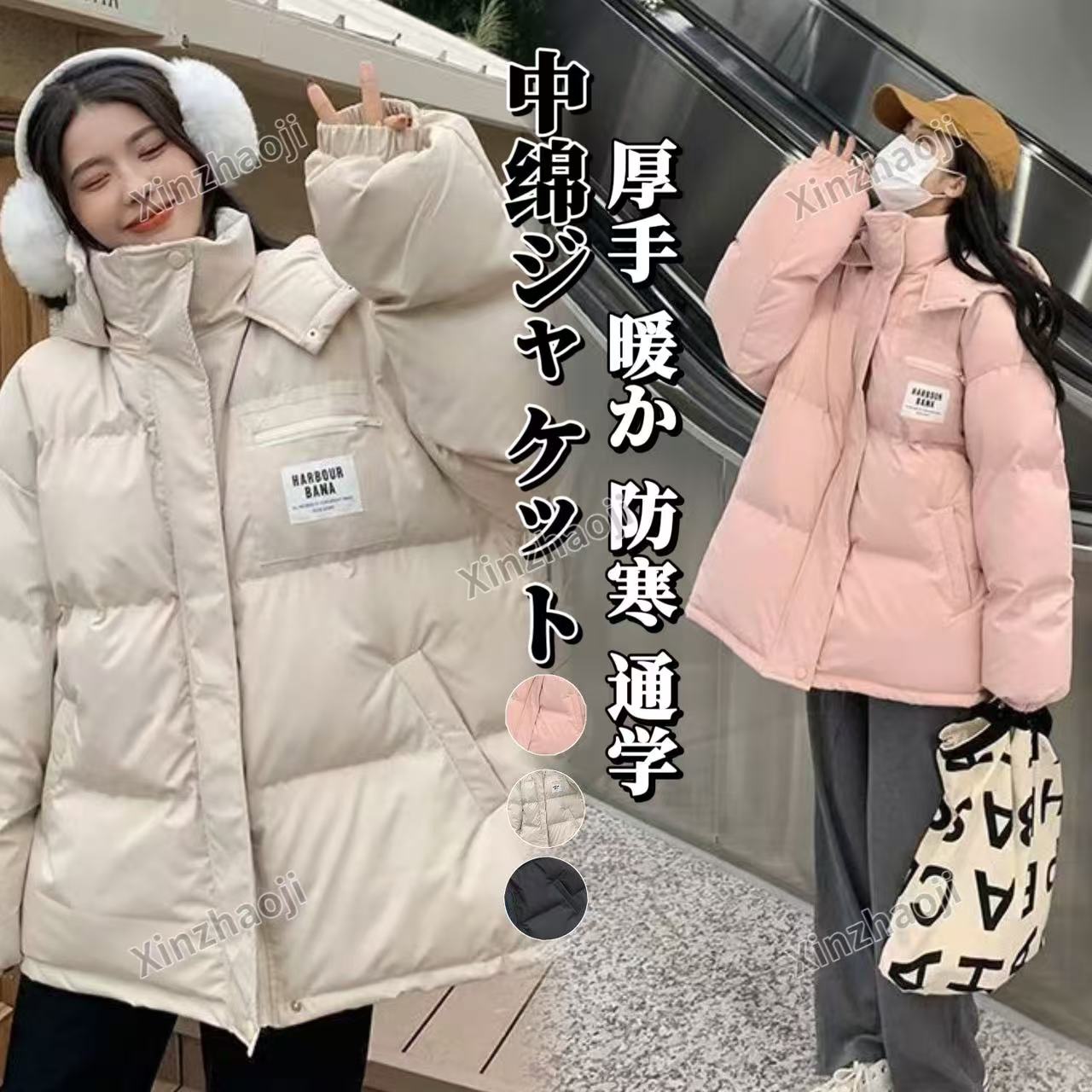 綿ダウンジャケット ダウンコート 中綿ジャケット 秋冬セミロングコットンジャケット レディース 冬韓国ファションアウターオフィス 通勤アウター