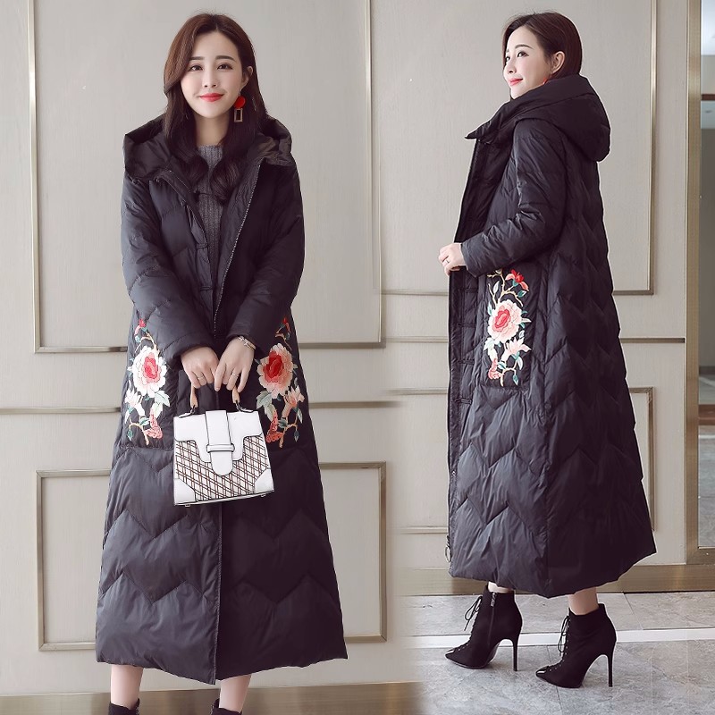 2025人気新作 刺繍ロングタイプ綿ジャケット韓国ファッション 秋冬マキシ丈アウター 防寒中綿ロングコート レディー ダウンジャケット コート