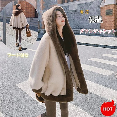 両面着用 ダウンジャケット 裏起毛厚手 綿服 新作アウター アウター レディース ラムズウール ゆったり 裏起毛ファッション フード付きコットンコート ジャケット韓国ファッション