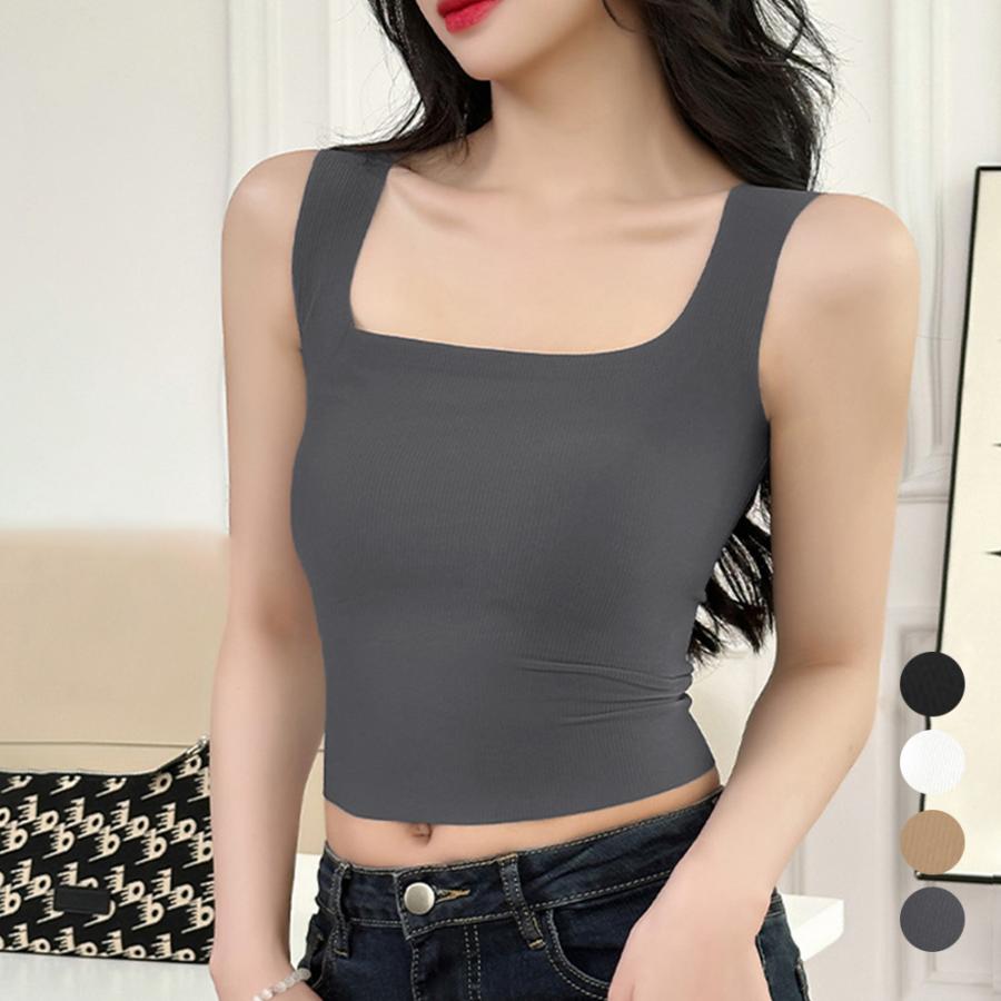 タンクトップ ショート丈無地 カップ付きキャミソール ブラトップ キャミソール