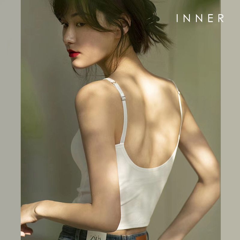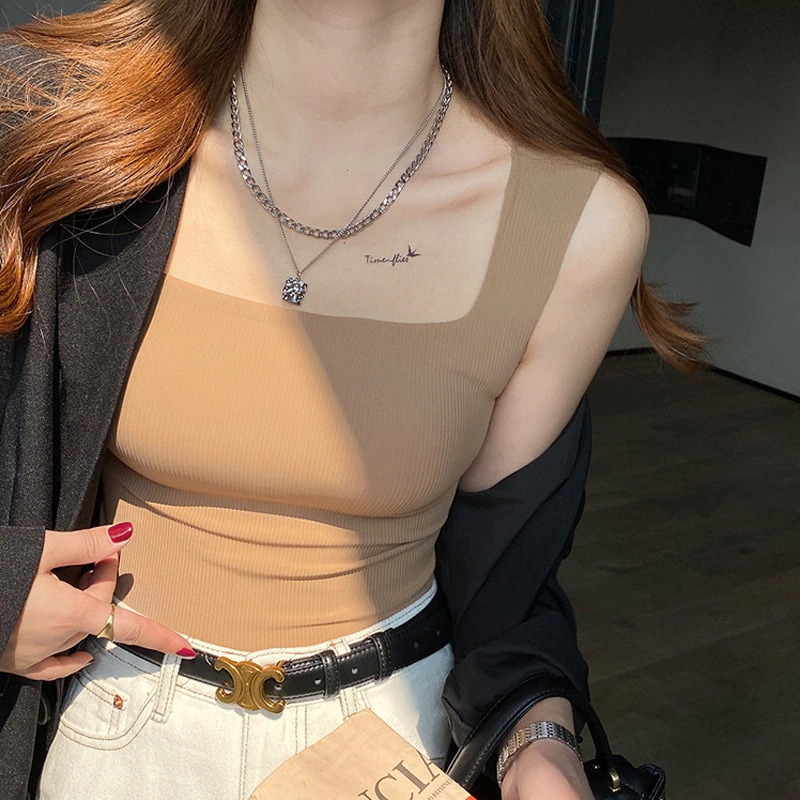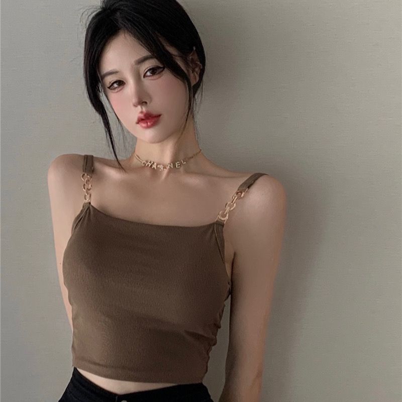 2024 人気 カップ付きインナー ニッチデザイン スイート チェーン セクシー スリミング 着痩せ 百掛け 質感 チェストパッド付き キャミソール タンクトップ ヨガ 美背 レディース