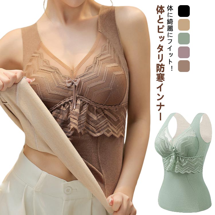 あったかインナー タンクトップ レース 寒さ対策 ふわもち起毛 キャミソール カップ付き 防寒 インナー ノンワイヤー 裏起毛 あったか 保温 暖かい 軽い 冷え対策 春 秋 冬 女の子 薄手 伸縮性