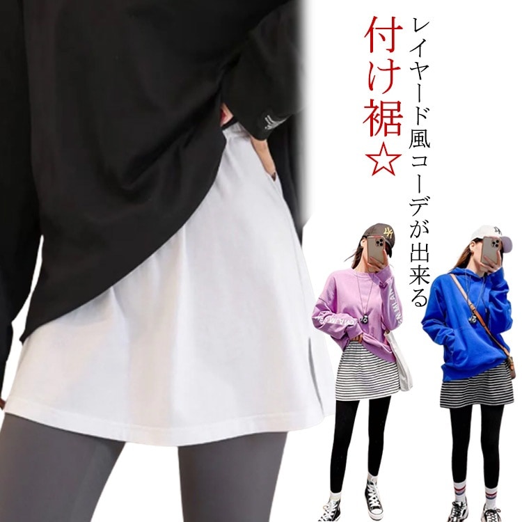 付け裾 レディース レイヤード つけ裾 重ね着風 ストラップ つけすそ Aライン ゆったり フェイクレイヤード 体型カバー パーカー Tシャツ 裾フレア 腰まわり おしゃれ トップス ウエストゴム お