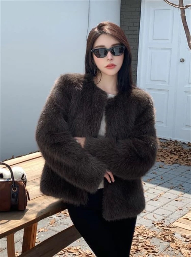 韓国ファッションファーコートアウター レディース 秋冬ゆったりニットボタンシングルブレスト ファー 毛皮アウター