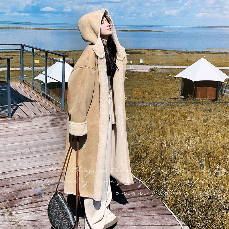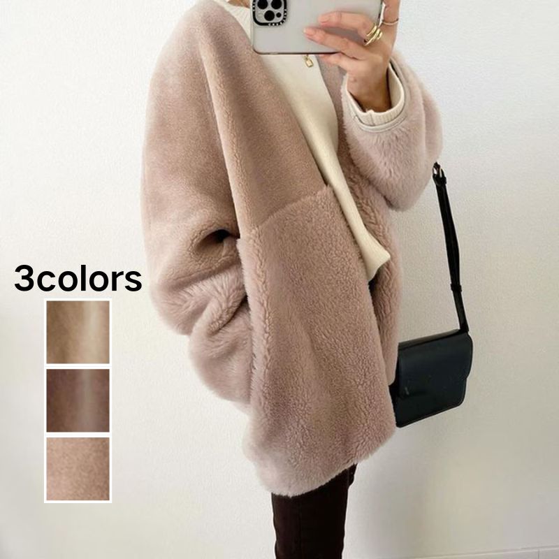 韓国人気商品 レディース 厚手 アウター 冬はフリースで保温 防寒 大きいサイズ 暖かい ゆったり トップス ふわふわ 毛皮 皮毛一体 体型カバー 華やか暖かい 本物