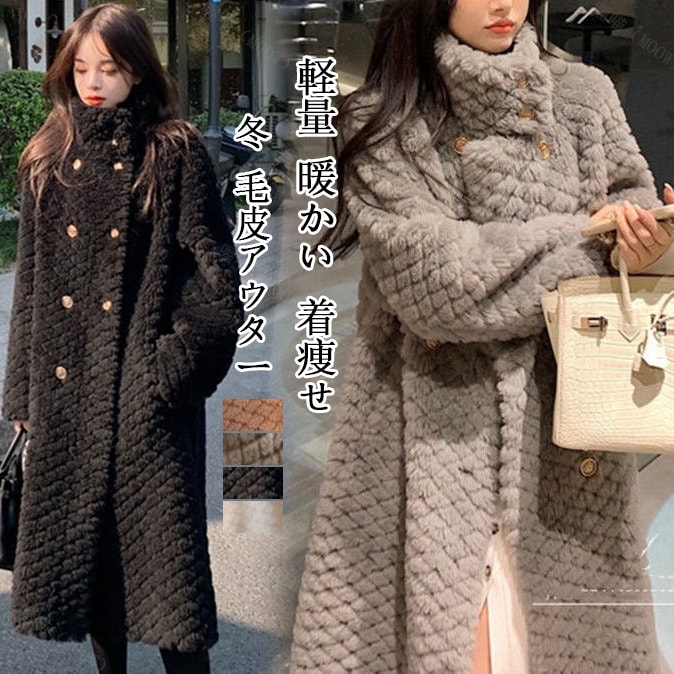 韓国ファッション 秋 冬 ファーアウター ロングコート レディース 超暖かい 厚手 保温 ジャケット レディース デザイン感 百掛け ファー 毛皮アウター