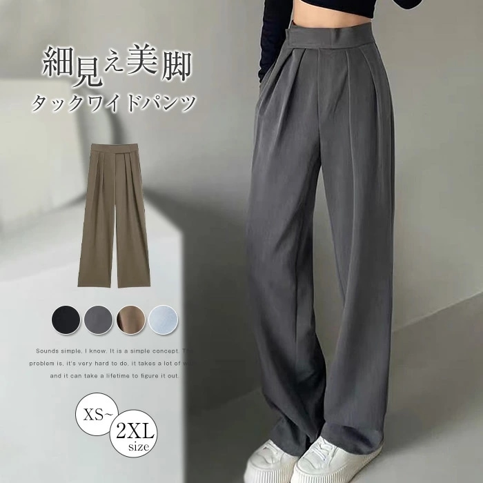 スラックスパンツ レディース ボトムス パンツ タックパンツイージーパンツ ワイドパンツ ワイド アシンメトリー タック ロング 美シルエット オリジナル リラックス ハイウエスト マキシ丈 美脚