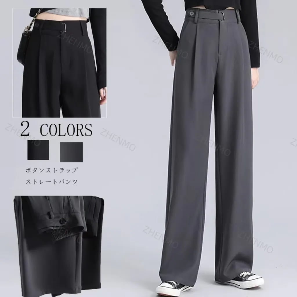 ハイウエスト 美脚 脚長 ストレートパンツ レディース ボタンストラップ ワイドパンツ 女性 ボトムス ワイド パンツ ハイウエストパンツ ズボン 長ズボン ロングパンツ