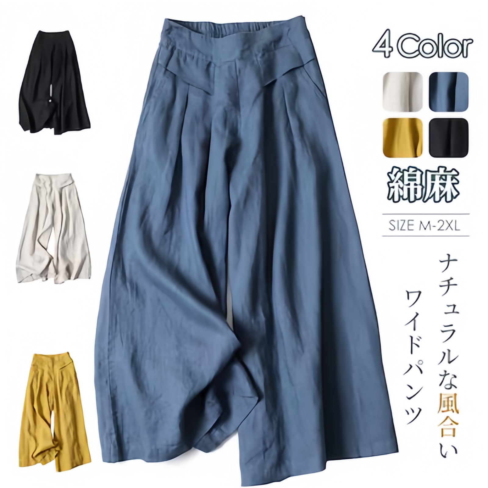 2024改良型ワイドパンツ 綿麻 柔か軽か手触り良 ロングパンツ 柔か軽か手触り良 薄手 爽か涼しゆったりら楽ちんガウチョパンツ 速乾 着痩せ 清涼感 ワイドパンツ