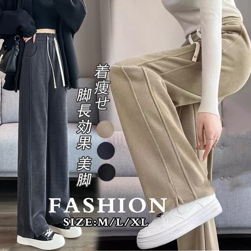ワイドパンツ 2type 韓国ファッション レディース コーデュロイワイドパンツ 裏起毛 ガウチョ ハイウエストゆったりスリム 縦型カジュアルパンツ ウエストゴム ズボン