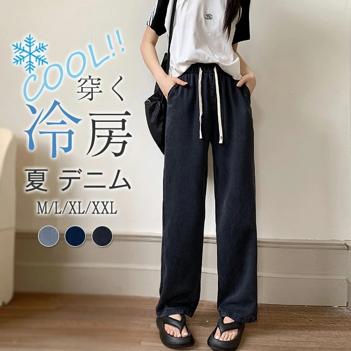 ワイドパンツ レディース デニム パンツ 大きいサイズ ひんやり ガウチョ デニムワイドパンツ UVカット 春 きれいめ ボトムス ゆるパンツ 薄手 夏 ウエストゴム 着痩せ 美脚 通勤 ゆったり 可