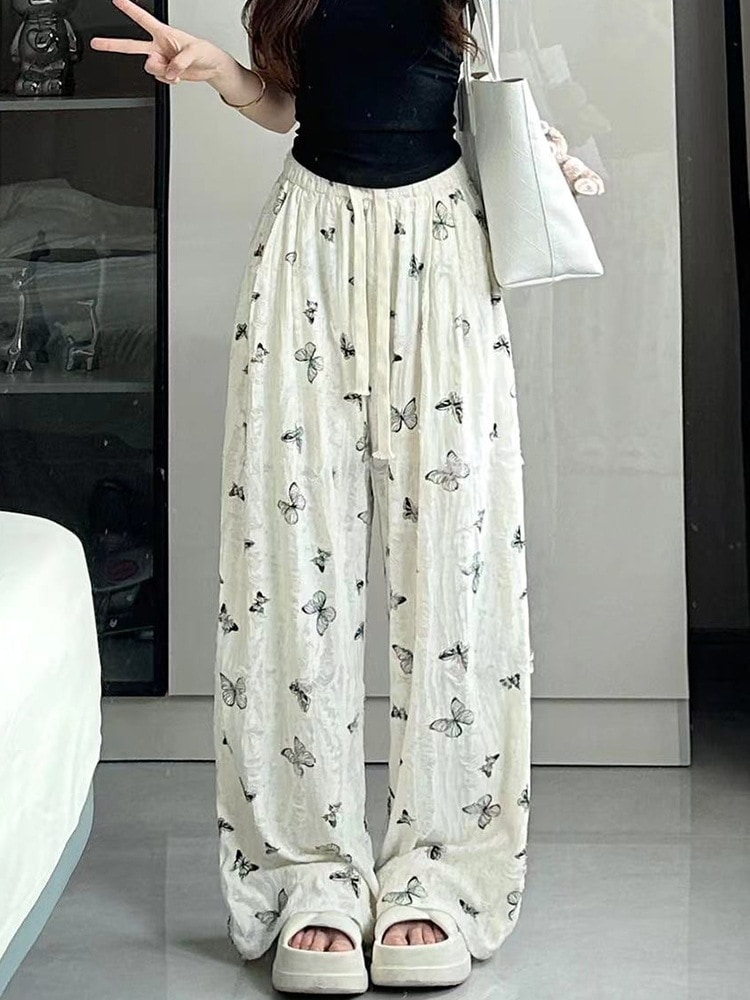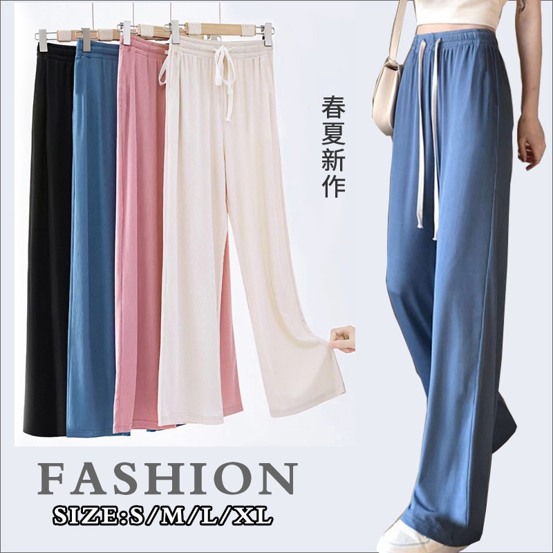 アイスシルク スーツパンツ 薄手 夏 ハイウエスト 巾着 ゴムウエスト ストレート ワイドパンツ レディース ロングパンツ 日焼け止め ジャージ ズボン メガ割