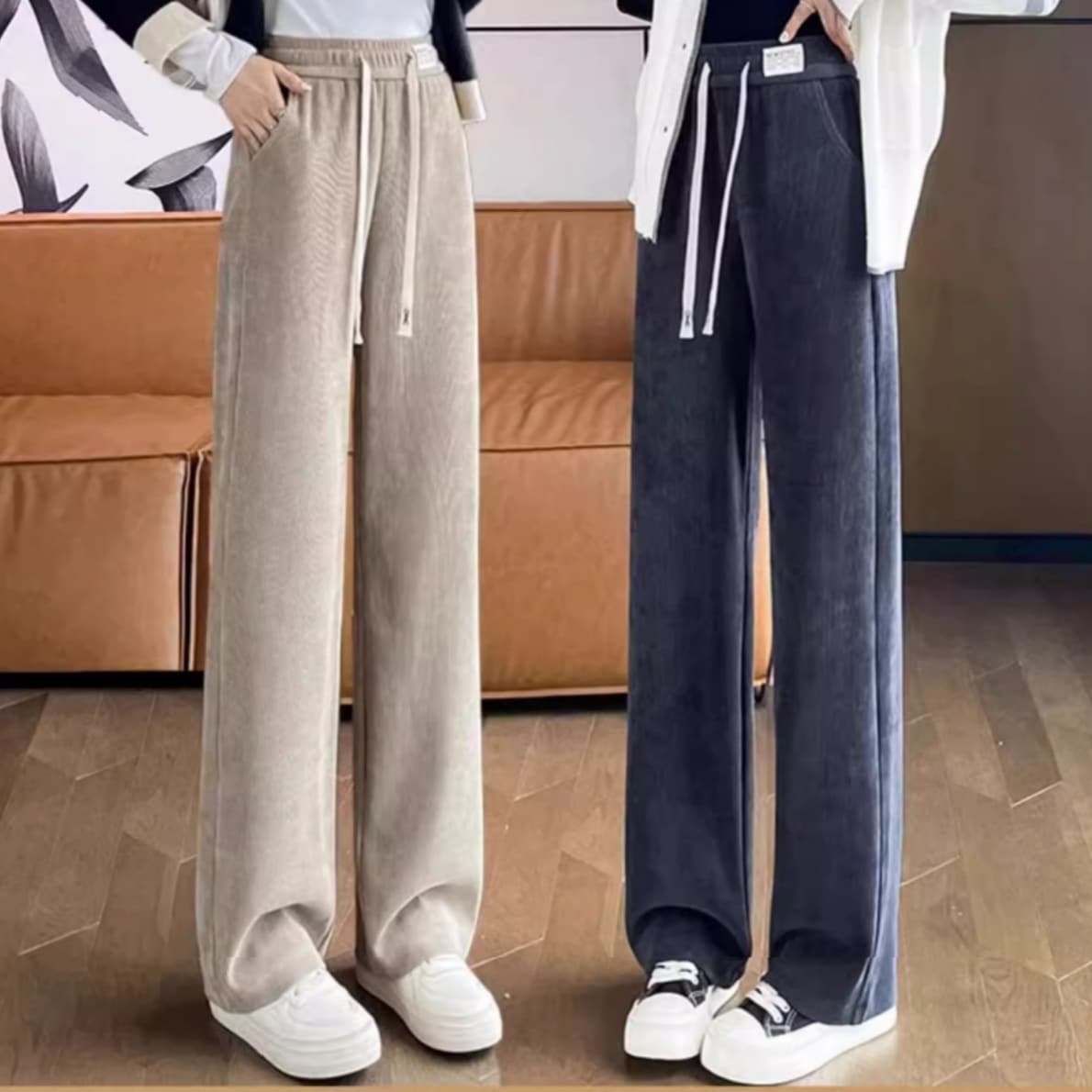 デニムボトムス デニムパンツ 脚長効果 スキニーパンツデニムパンツワイドパンツ加絨加厚ワイドパンツ女性秋ハイウエスト着やせストレートパンツコーデュロイゆったりカジュアルパンツ