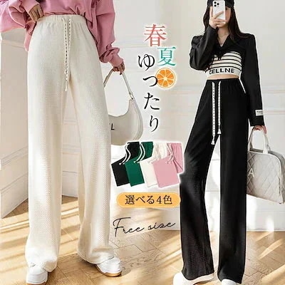 ワイドパンツ レディース 春夏 セミワイドパンツ セミワイド ズボン ジャガードパンツ 長ズボン ロング丈 ワイド ゆったり ボトムス ウエストゴム カジュアル30%までに制限