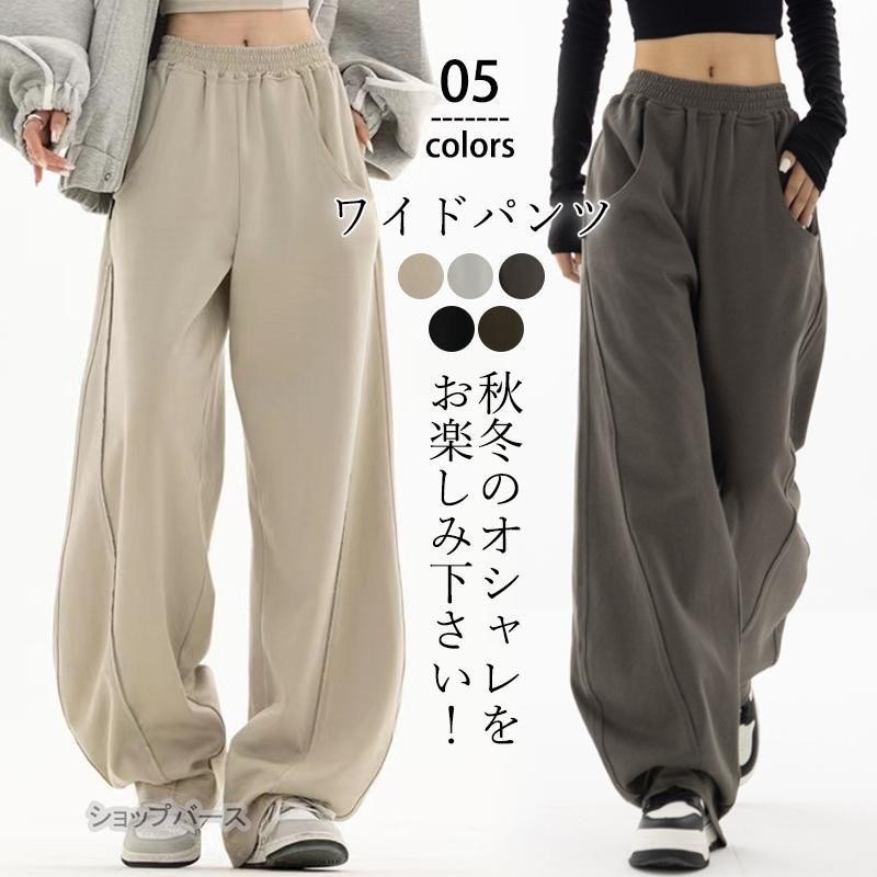 ワイドパンツ レディース パンツ カーブパンツ スウェット ウエストゴム ジャージ スウェット ゆったり 体型カバー 着痩せ 脚長効果 秋冬