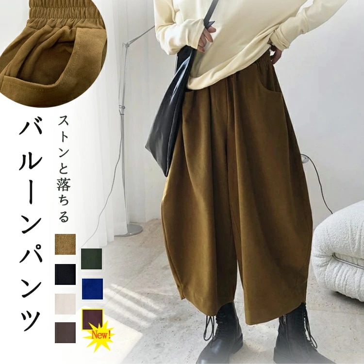バルーンパンツ レディース コクーンパンツ 秋冬 パンツ ワイドパンツ ロング ウエストゴム ポケット付き 美脚 サルエルパンツ ボトムス ゆったり かわいい 9分丈 大きいサイズ 大人 黒 ブラウ