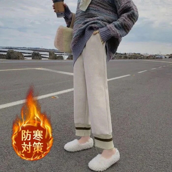 激壳れ人気商品ワイドパンツ 韓国ファッション裏起毛パンツ 秋冬新作パンツ女性パッド入りカジュアルニットストレートパンツドレープワイドパンツ ロングパンツ