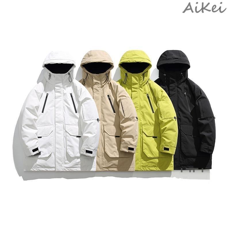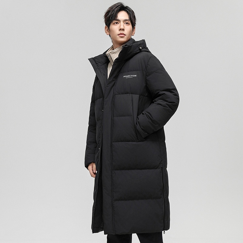 メンズ膝丈極寒ダウンジャケット冬新作フード付き厚手トレンドダウンジャケット ダウンジャケット