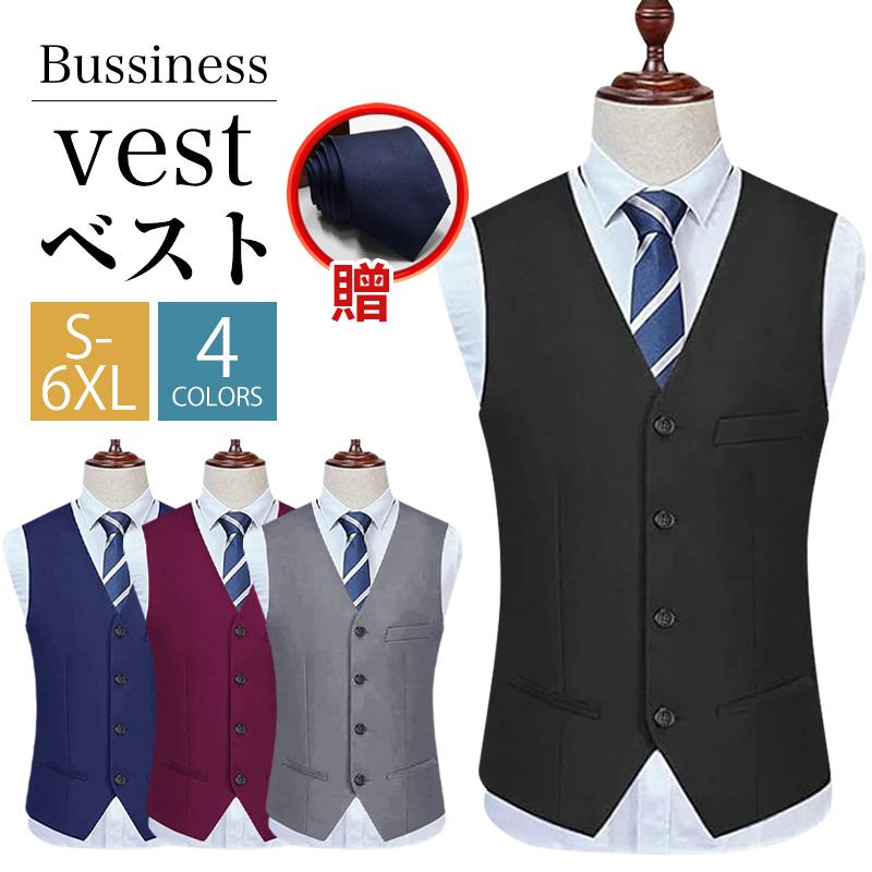 ネクタイ贈 ベスト メンズ スーツ ジレベスト S6XL スリム 尾錠付き 春夏秋冬 大きいサイズ スーツ仕立て チョッキ フィット ビジネス 結婚式