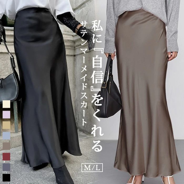 マーメイドスカート サテンスカート ロングスカート マキシ フレア マキシ タイト ロング ロング丈 マキシ丈 きれいめ 光沢感 上品 トレンド 着痩せ ウエストゴム オフィス サテンナロースカート